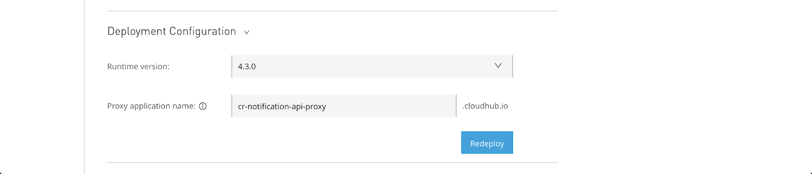 4.3.0-notification-api-proxy . This property will define the Proxy URL and the name of the Mule application in the Runtime Manager.