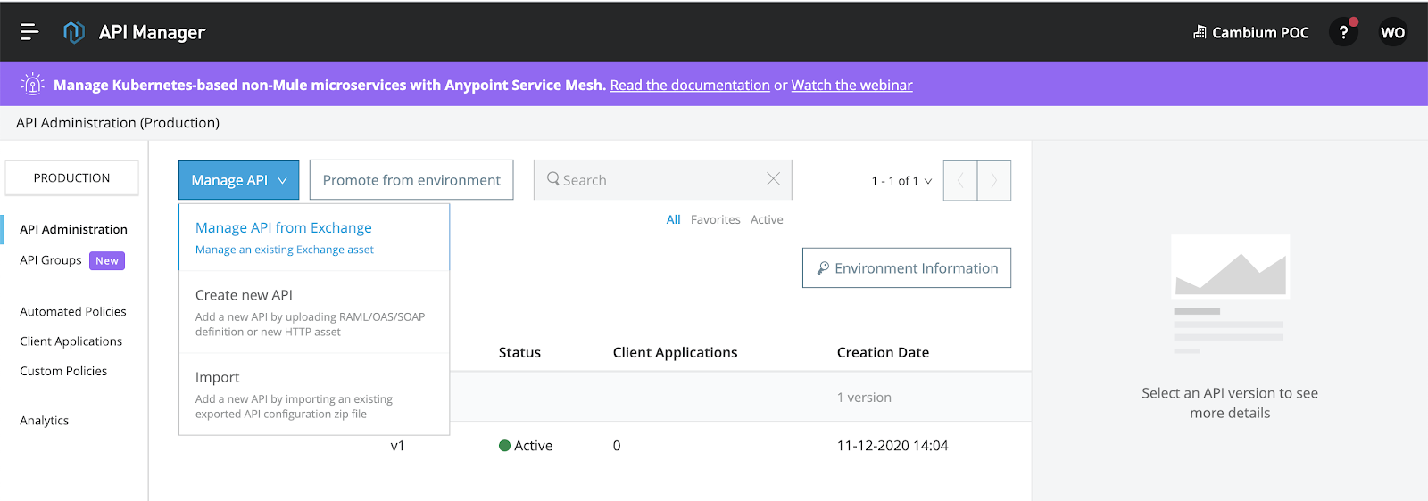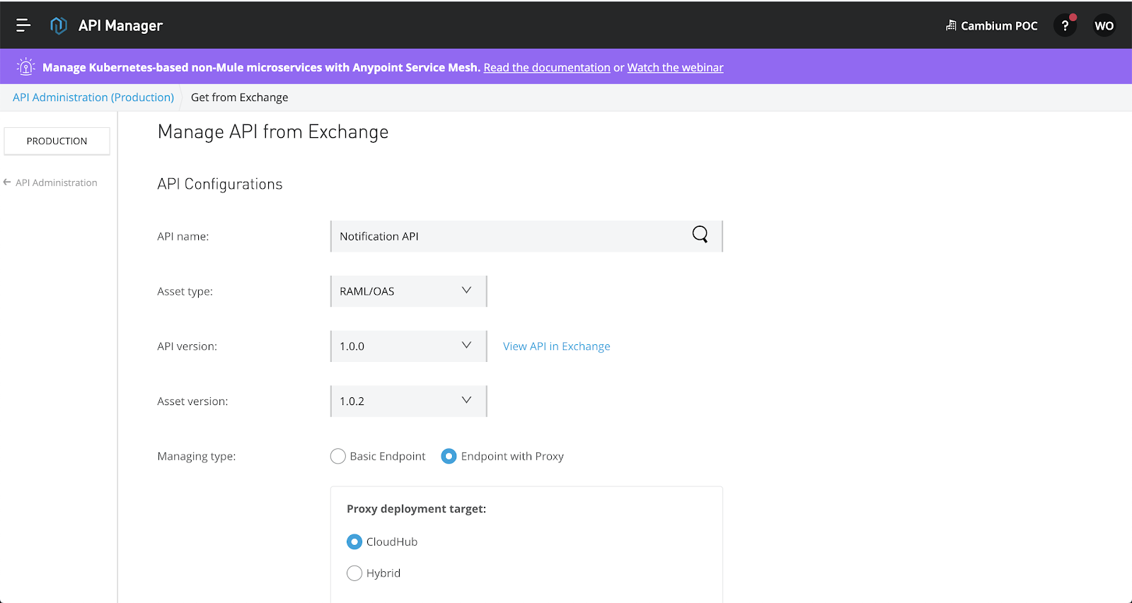 To create the proxy we are going to get the API Definition from Exchange.