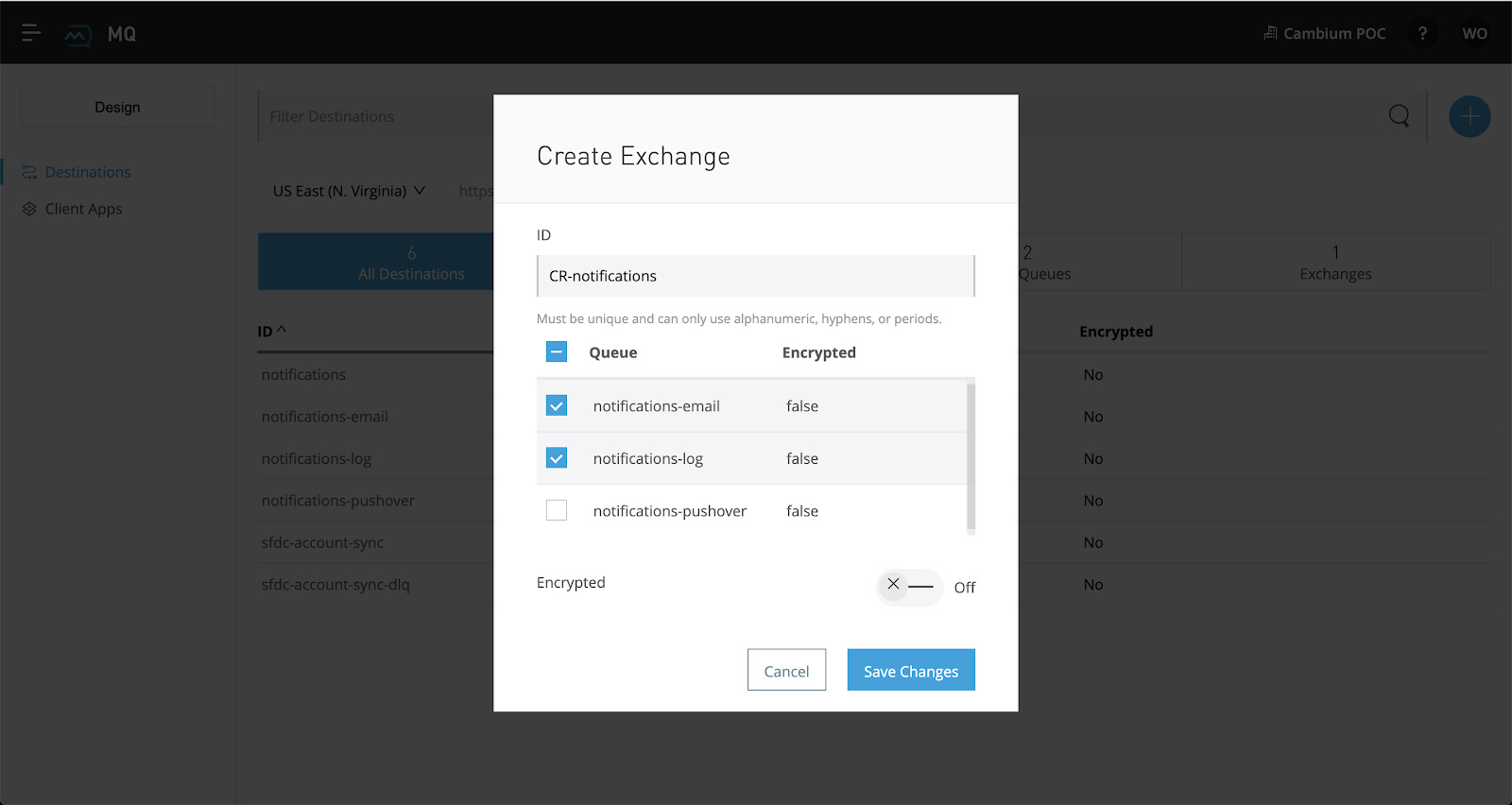 Select your notifications-email and notifications-log queues by clicking the corresponding checkboxes next to the queue names. Then click "Save Changes"