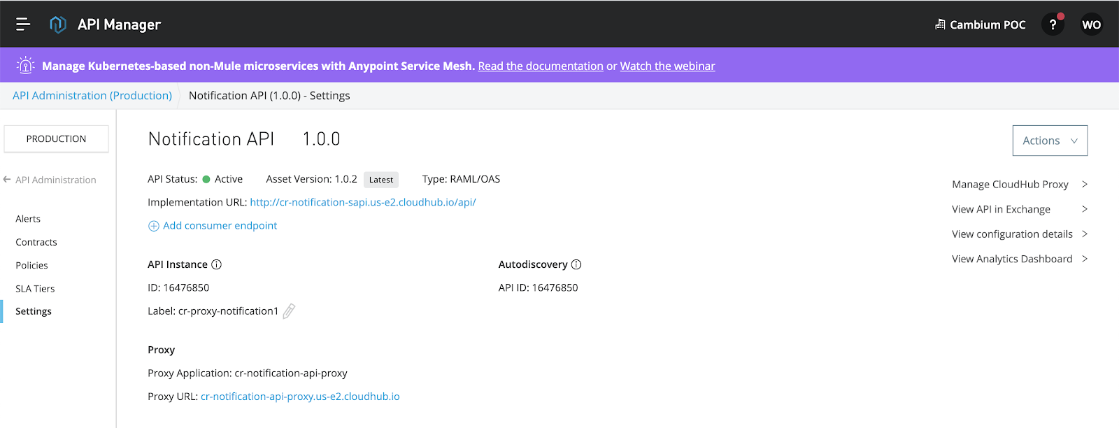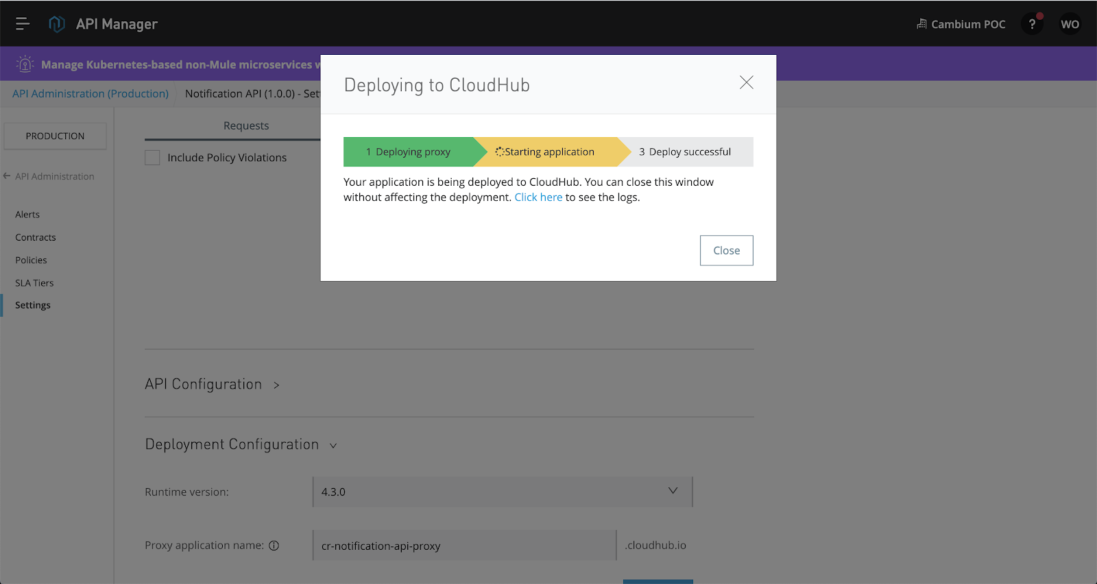 Your proxy API is now accessible through CloudHub.