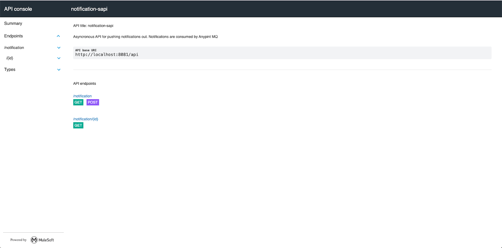 description: Asyncronous API for pushing notifications out. Notifications are consumed by Anypint MQ