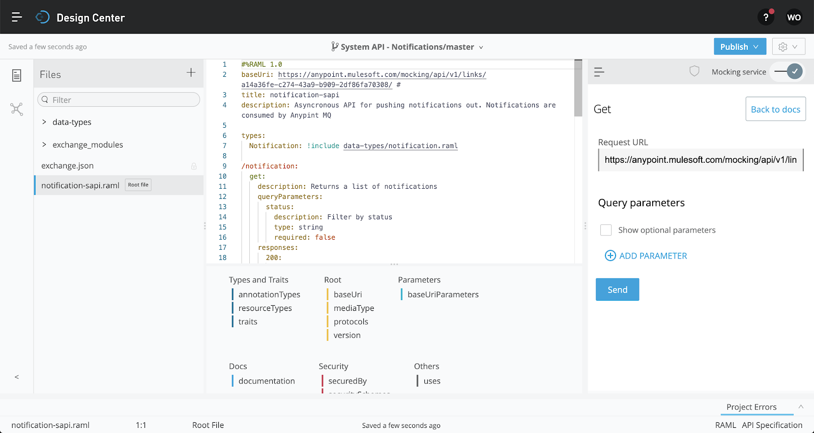In this set of labs, you will build a Notification API that uses Anypoint MQ to send notifications to multiple channels. You will begin by designing an API specification, then you will implement the API, and finally you will proxy the API and apply a rate-limiting SLA policy to it.