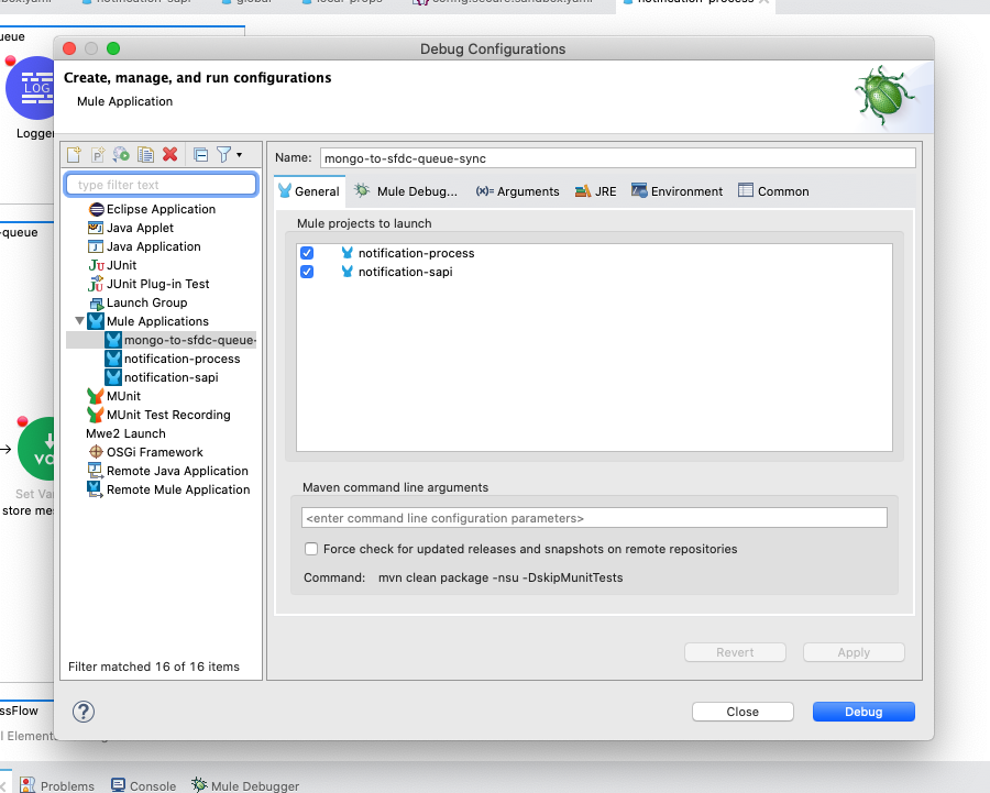 Once in Debug Considerations, select both projects, in the "Mule Projects to Launch" box. Then select Debug.