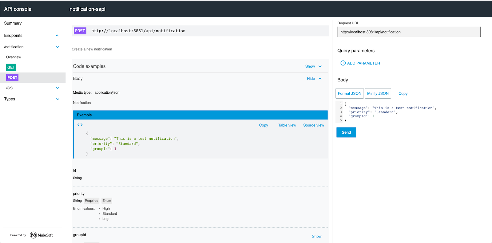 Now we will test the POST Notification method. Begin by selecting POST /notification.