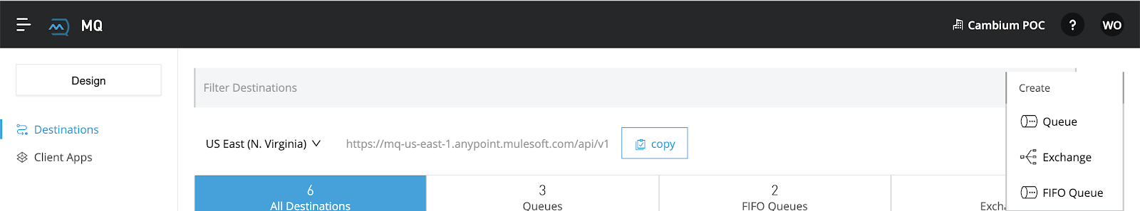 Anypoint MQ is a multi-tenant, cloud messaging service that enables customers to perform advanced asynchronous messaging scenarios between their applications. We will be creating 4 queues and 1 exchange during this exercise